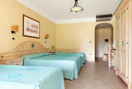 Located at the Club Hotel Marina Beach, just a short walk (200 meters) from the main building of the Sentido Orosei Beach, the spacious and bright Marina Beach Room is furnished in traditional Sardinian style with warm, welcoming colors.