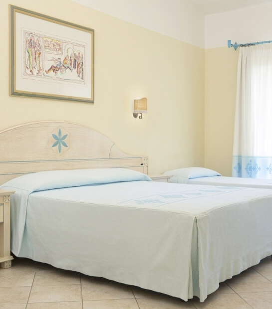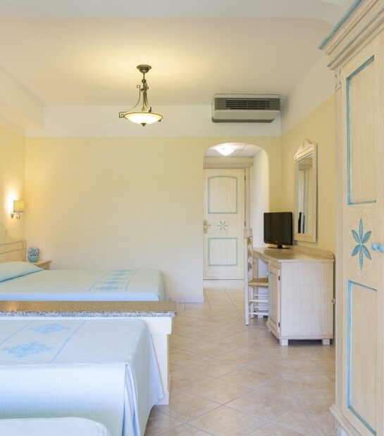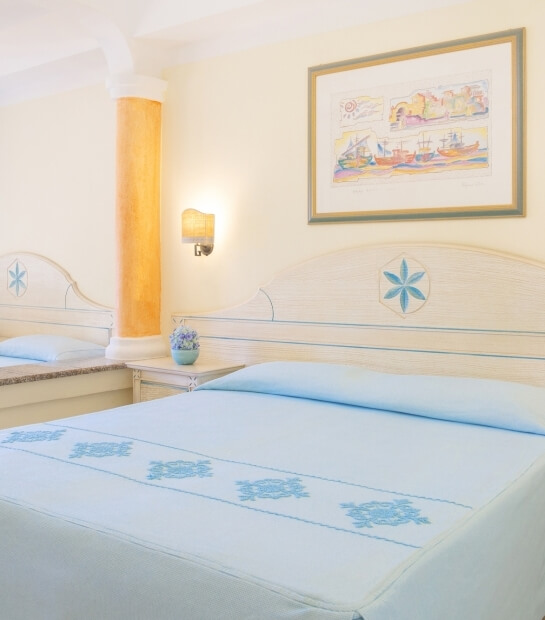 Located just steps from the main building (100 meters), the spacious and bright Marina Rooms are furnished in typical Sardinian style with warm, welcoming colors.
