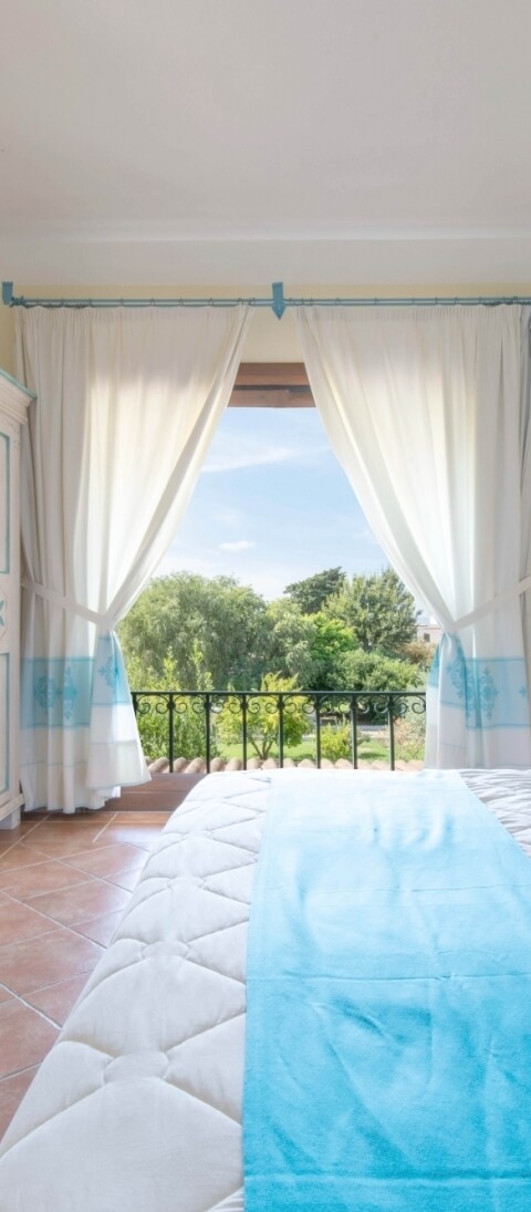 Carefully furnished, they have king-size beds (excluding extra beds), bathroom with shower and hairdryer, air conditioning, telephone, safe, TV, mini-bar (consumptions on payment), kettle, balcony or covered veranda equipped with table and chairs; some quadruple rooms with bunk beds.