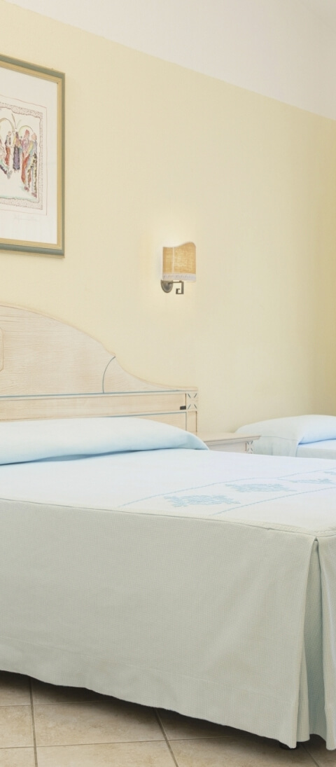 Carefully furnished, they have king-size beds (excluding extra beds), bathroom with shower and hairdryer, air conditioning, telephone, safe, TV, mini-bar (consumptions on payment), kettle, balcony or covered veranda equipped with table and chairs; some quadruple rooms with bunk beds.
