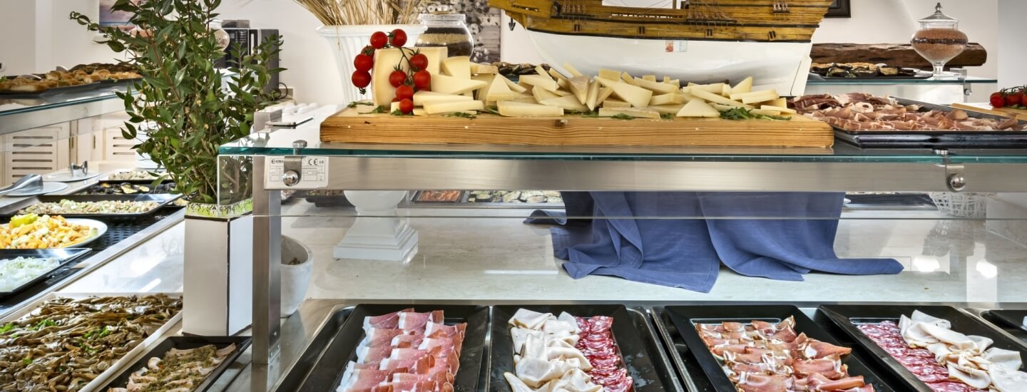 Concediti un sontuoso buffet che include antipasti, una varietà di insalate, pizza e un'area di show cooking che offre piatti di pasta e zuppe, insieme a secondi di carne, pesce, grigliate e verdure. Non perdere l'angolo dei dessert e la selezione di frutta fresca.
